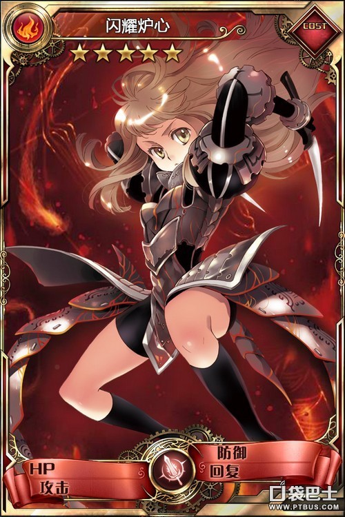 闪耀炉心的卡牌画师为国内著名的少女漫画家“丁冰”。《大河下》、《楼兰旖梦》等经典漫画皆出自她手。卡牌用色大胆活泼,身体比例独特的闪耀炉心在她的画笔之下也多了几分可爱。