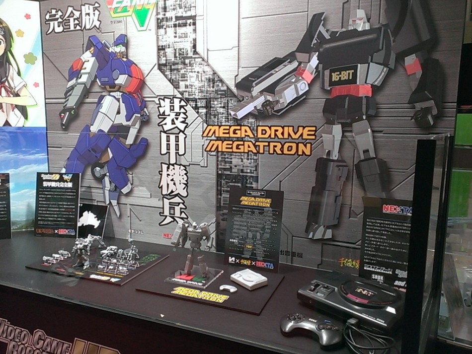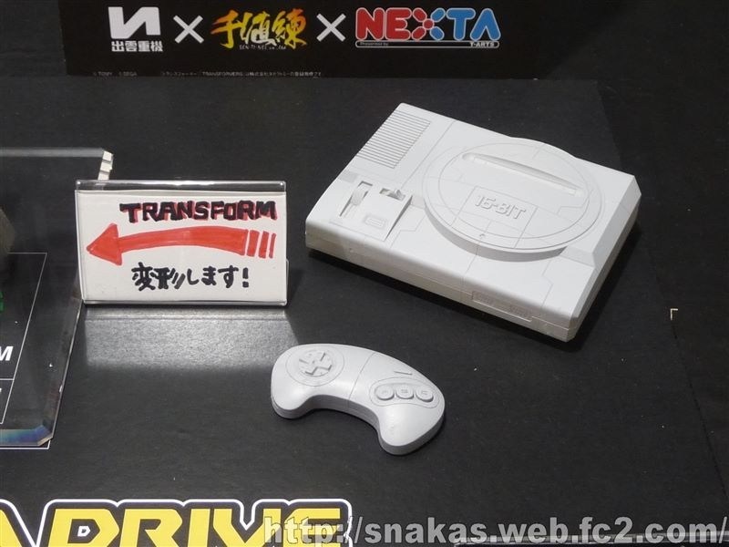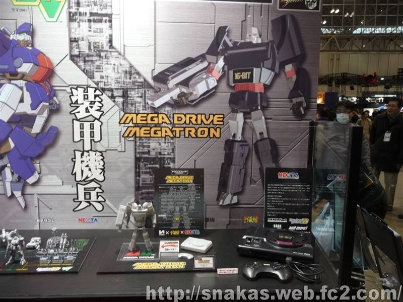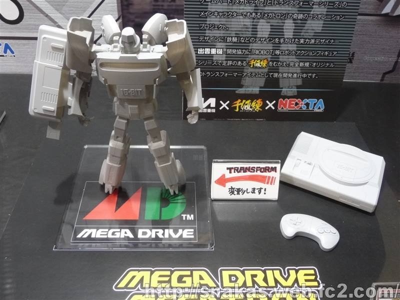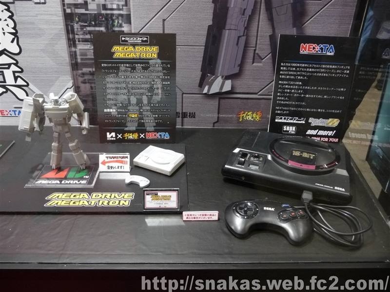 日本最大的手办展览会“Wonder Festival”2014于前几天正式开幕,在会上由世嘉和Takara-Tomy联合推出了一款特别的变形金刚威震天玩具,虽然造型上看起来是老玩家熟悉的传统威震天造型,但变形后则不是传统的手枪,也不是电影版的战斗机,而是世嘉的MD主机,腰部还有大大的“16bit”字样。