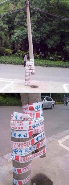 电信的胶带真是厉害……哪里断了粘哪里,民众再也不用担心有东西断掉了!