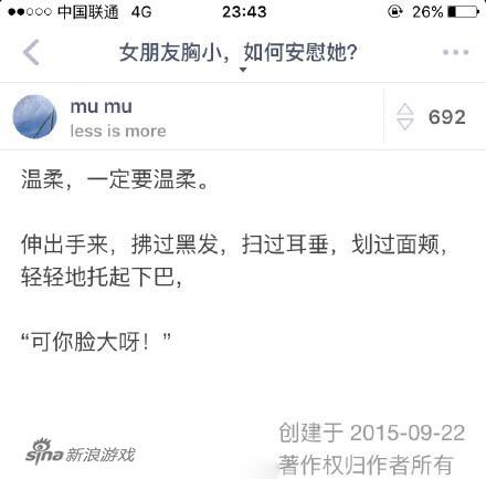 一不小心又把女友惹毛了,道歉了也没用,她气呼呼地说:哼!我要去买个贵的东西!我一听,有转机!花钱消灾呗!马上说:好啊!我陪你去买。然后我们一起去了小商品市场买了个搓衣板回来。