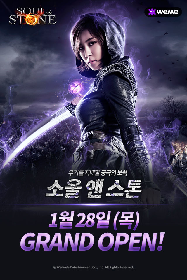 韩国Wemade Entertainment公司预定于2016年在韩国手机平台上推出一款叫做手机游戏,官方日前正式宣布,《soul&stone》将于本月末发布,同时他们也放出了代言人河智苑的游戏宣传照。河智苑一改以往温婉的形象,英气出镜。