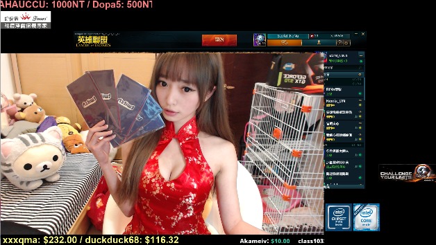 Mita直播画面最近台湾网友就因为一位女主播争论了起来,这位叫Mita的女主播在直播中说自己买了一件开胸旗袍,会在过年直播的时候穿,但如果有人肯出500块美刀(约合15000新台币)的话,就可以提前穿上那件旗袍直播。然后就真的有干爹(台湾twitch对土豪网友的昵称还可以叫王爷)给了500美刀,于是乎女主播就换上了那件旗袍做起了直播。虽然视频比较早了,但争论到现在还未停止。