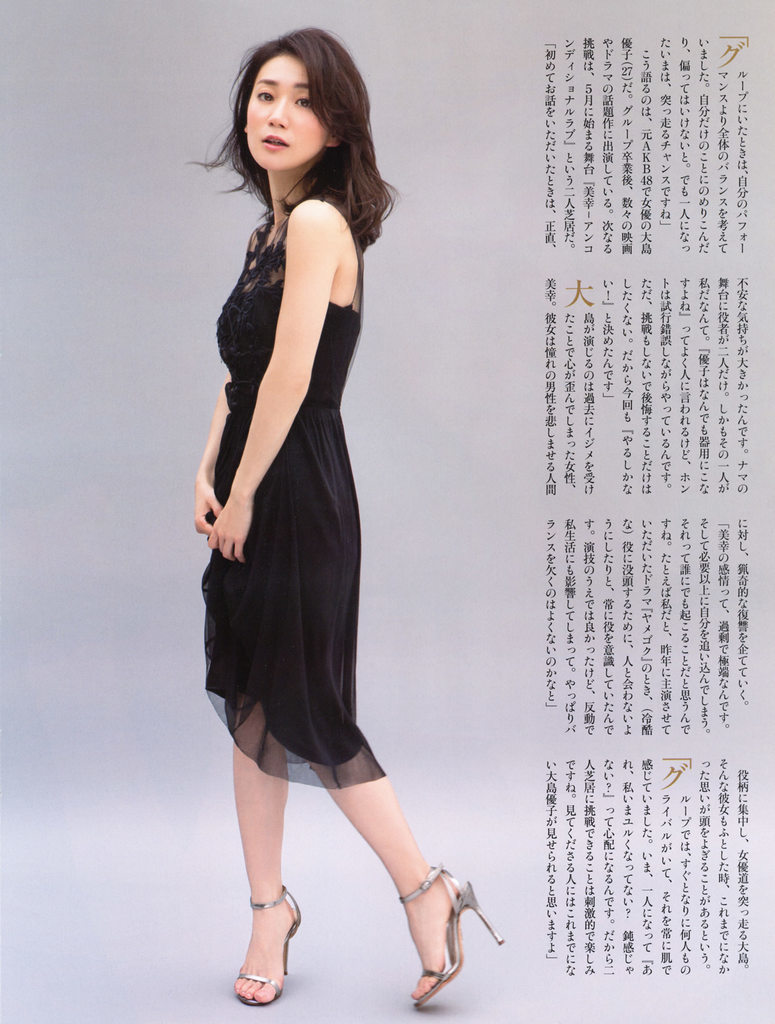大岛优子大岛优子本人也是一个ACG爱好者,虽然宅属性不明显,但是平时很喜欢看漫画,也是一名妖怪手表玩家。最近大岛优子为杂志拍摄了封面,还是美美哒,下面就来欣赏一下吧。(编辑:dac)