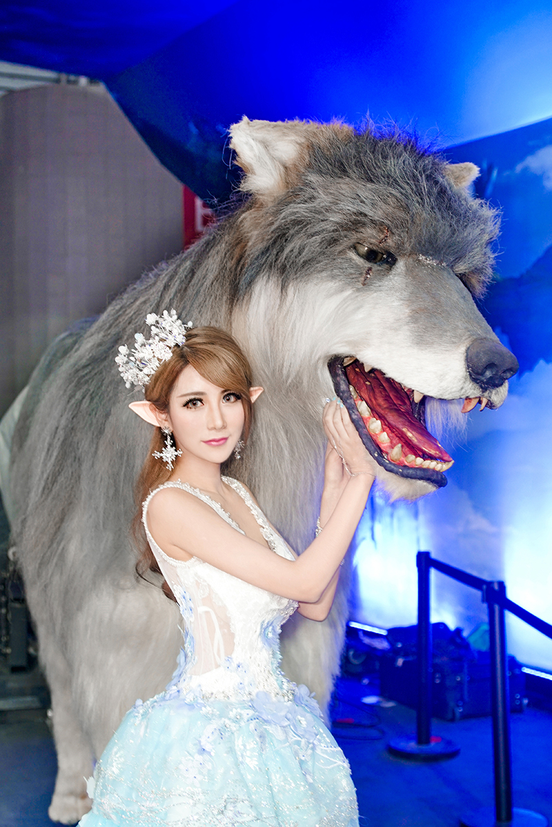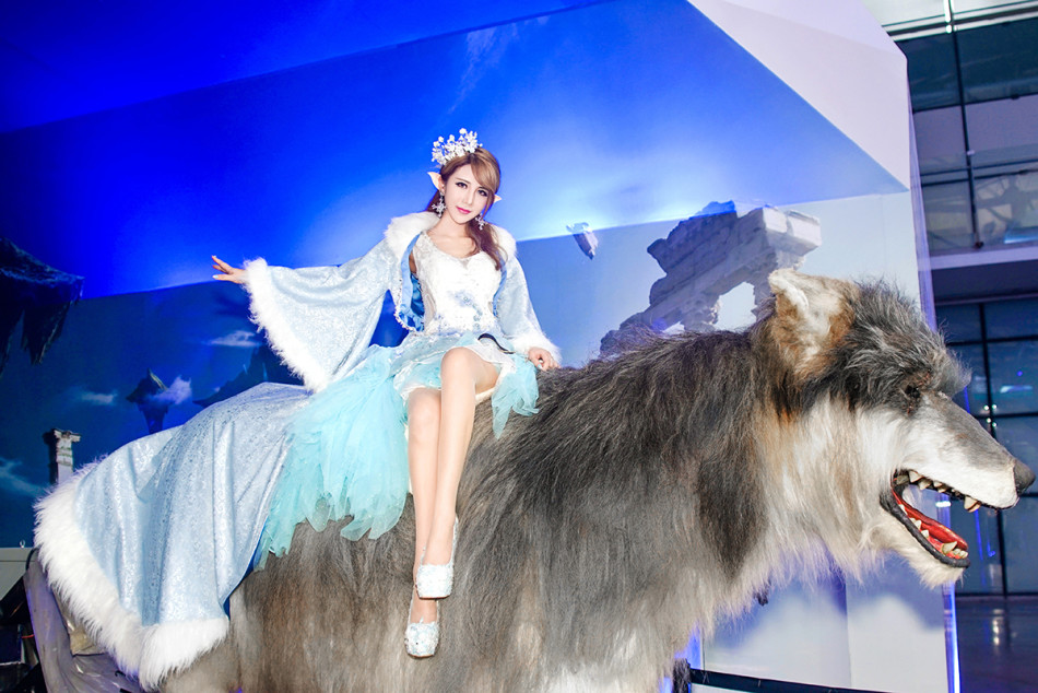 本届ChinaJoy在迎来了客流的高峰,被称为“CJ最美女主持”的夏小薇,空降展台化身“雪狼精灵”,并带来了一个重达两吨,价值接近两百万人民币的巨狼,“美女与野兽”成为了本次CJ的最大亮点,玩家看客把展台围堵得水泄不通。