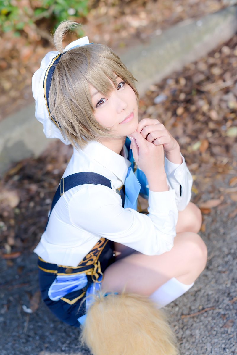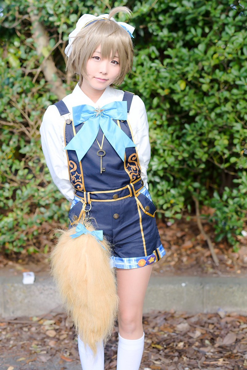 enako有点婴儿肥的可爱妹纸くろねこ cos的是手游《梦王国与沉睡的100王子》中的プロキオン——一个长着狐狸尾巴的少年。