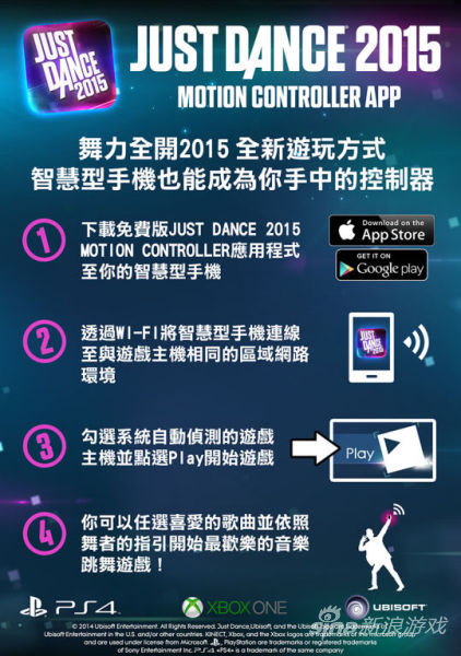 Ubisoft昨日宣布,全球最畅销的跳舞游戏品牌最新上市作品《舞力全开 2015》将支持智能手机控制器 App,使玩家在没有 Xbox One Kinect、PlayStation Camera体感摄影机或 PlayStation Move 控制器的情况下一样也能“舞力全开”。玩家只需免费下载手机运动应用程序,即可支持作为 PS4 与 Xbox One 版本游戏的体感控制器。