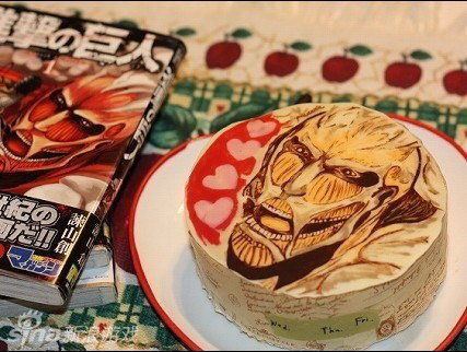 不久之前,一位日本太太为了庆祝结婚纪念日,烧制了一个《进击之巨人》主题的蛋糕。原本会以为是帅气的三笠或是可爱的阿明,吃货莎夏也不错呀!结果是超巨大巨人… 不知她的丈夫回到家来看到这样的蛋糕会有怎样的反应呢?这个蛋糕看起来好似是火腿做的呢… 11区有用便当、咖啡等食品饮品拼制动漫角色的优良传统,这对从小被教育“不许玩弄食物”的天朝人民来说明显就是技能点点错了啊!本次为《进击之巨人》主题蛋糕、便当照片集,喜欢的朋友请猛击!