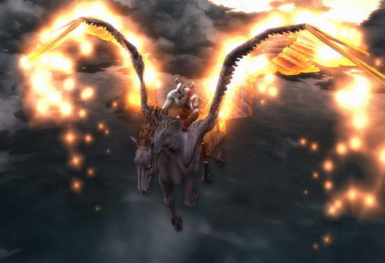 一提到《战神》,玩家们自然会想到那个有着鲜红纹身,挥着两把链刃,弑神如切菜的叛逆英雄奎托斯。经过《战神1》波澜壮阔的故事之后,在《战神2》里这种霸气更是让奎爷发挥得淋漓尽致,众神的背叛,亲人的鲜血,兄弟的诀别,战友的牺牲,一切的一切都让奎爷将愤怒的火焰再次向众神喷发。而作为本作中革命性的空战环节,载着奎爷翱翔于天际的便是天马派格萨斯。