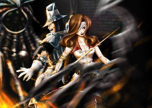 死板顽固的近卫兵队长和忠诚正直的王国女将军,看起来身份有些错位的这对却有着一种特别的萌点,前期阿代尔巴特对这个有着各种恐怖传说的上司还是颇为敬畏的,因为意外的对抗并最终成为同伴,两人慢慢从互相了解到相互倾心,笨拙的阿代尔巴特让蓓雅崔克丝这座冰山慢慢融化,到游戏最后两人一同为公主推开阳台大门,携手举起圣剑时的会心一笑,充满了信任和柔情。
