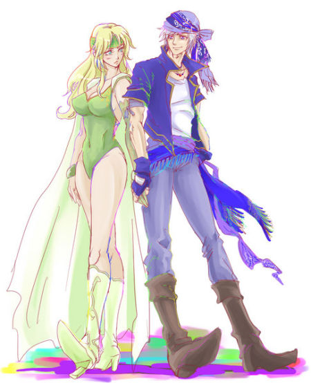 因为自己的过错而失去了挚爱的恋人,之后洛克将保护女性当做自己的行事宗旨,也为此救下了被帝国囚禁的莎莉丝,而另一方面,从小就是孤儿,接受英才教育成为魔导骑士的莎莉丝完全没有身为女性对爱情的感觉,奇怪的两人被命运的红线所牵着走到了一起,虽然直到游戏结束都没有很直接的表白,但最终幻想系列前几作鲜有爱情元素,因此他们两人之间那种若即若离的淡淡感情格外让人觉得感动。