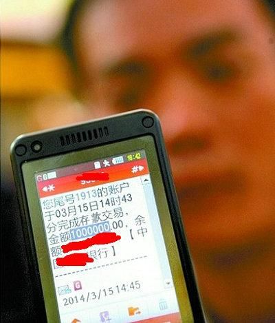 吴先生要取10万元钱,拿到钱后就匆忙离开了。因为赶时间,当时吴先生也没注意手机的银行信息。等过了好一会儿,吴先生拿出手机打电话,才看到银行存款提示的短信,账户竟凭空多了100万元。