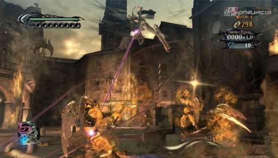 《猎天使魔女》不像鬼泣,不是那么要命的追求连招,这个更多的是追求爽快。游戏不算简单,尤其是你要追求全成就奖杯的话。但游戏本身流畅的和丝袜一样顺滑,全场就像在看贝姐跳芭蕾舞,甩头发,然后敌人就一个个倒下了。
