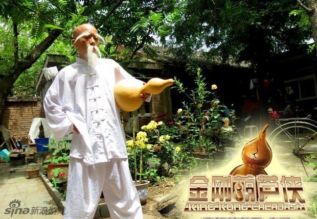 日前,由葫芦兄弟改编的现代神话剧《金刚葫芦侠》的第一集已拍摄完毕,而片方再度曝光葫芦爷爷的造型照。从剧照来看,考古家爷爷的形象犀利又雷人,一身蓝色中山装,斜挎老式军包,拿着80年代黑皮包,身背一把机枪,手中似乎还拿着一个大哥大。如此混搭,真是让人无语。而由张阿饰演的葫芦仙的形象仙风道骨,一身白色练功服,长眉白须,咋看很像是七龙珠里的龟仙人。