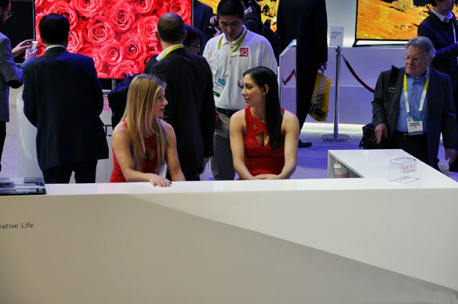 SG在为展台拉人气,为展品做介绍,为用户做指引和国内的满屏尽是“事业线”不同,CES上的Showgirl的穿着要“保守”很多,毕竟这里不像Chinajoy,新产品新技术才是主角。她们更多的是为展台拉人气,为展品做介绍,为用户做指引。