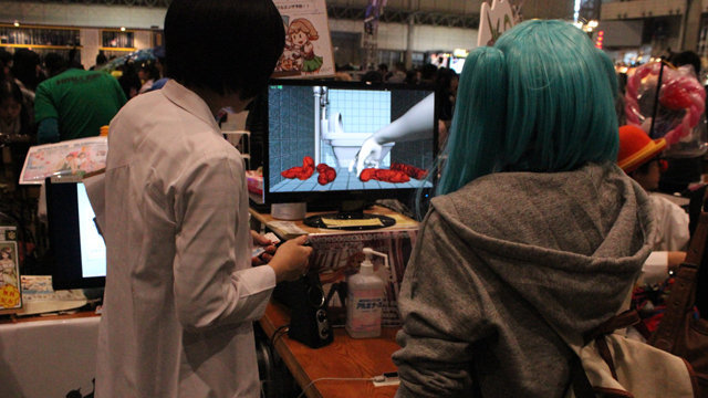 15/15 11区的重口味奇葩至极的《便便收藏》个标题明显取自如今十分流行的页游《舰队收藏 ~舰コレ~》,只不过主人公是众多经过拟人化之后变身为萌妹子的大肠杆菌。在游戏中需要操纵这些大肠杆菌通过点击屏幕攻击敌人,玩法类似《无尽的饼干》。据说等到游戏发售时将会有超过100个可选角色,同时由于大肠杆菌的种类非常丰富,所以也接受来自玩家的投稿。更特别的是,游戏的课金系统也不同寻常,不是靠充值而是“报告大便情况”。难道包裹在这些恶搞设定之下的其实是个健康游戏?