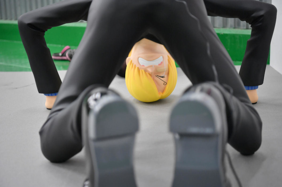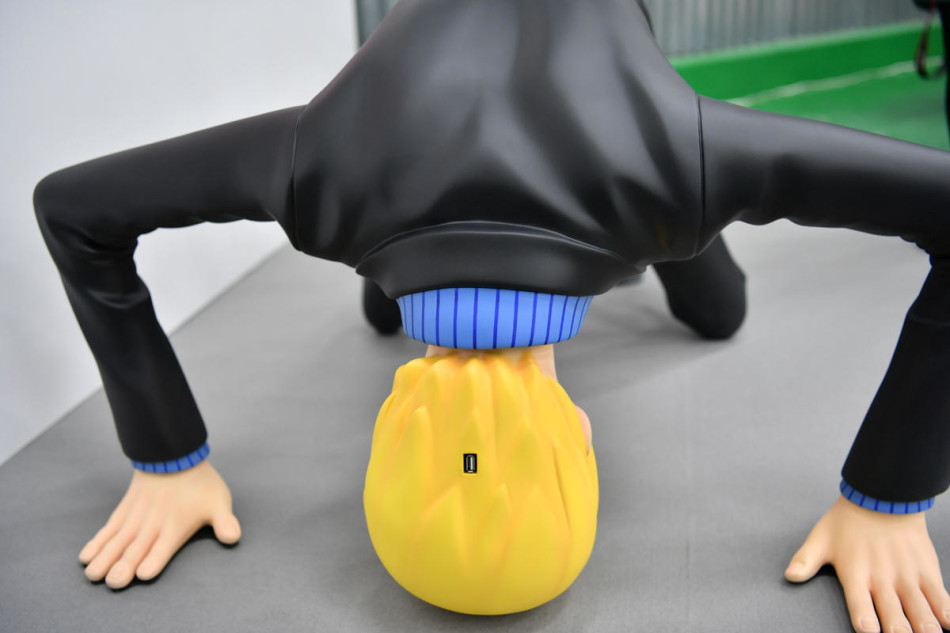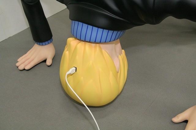 日前这一神秘奖品在东京某工厂曝光。主办方选取了原作中“山治(Sanji)叩谢恩师哲普(Zeff)”的一幕场景,依照山治叩拜的姿势耗时三个月纯手工打造了一个1.8米等比大的塑像,除了精准还原出服饰褶皱等细节外,塑像的头部和臀部还设有可为移动数码设备进行充电的USB接口——也就是说,这个塑像实际上是一个大号的充电器。