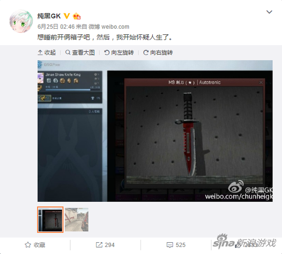 我们常把那些开箱子开出匕首的玩家称作“欧洲人”,而近日著名游戏解说——纯黑竟然在一周之内从伽马武器箱内开出了4把新匕首!!!真可谓是“纯正欧皇血统”。