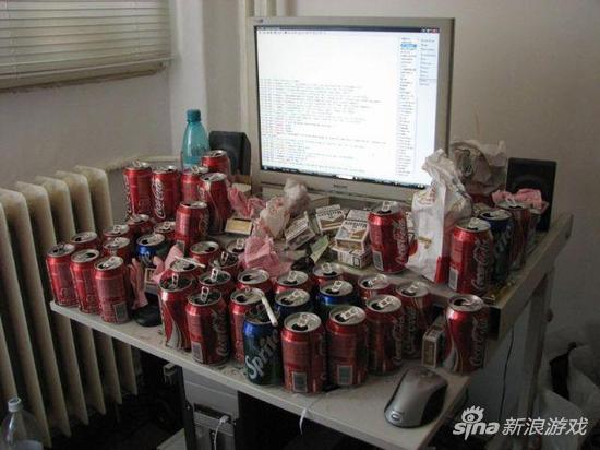 现在有时候去网吧,还能看见这种场面,各种外卖的饭盒,各种饮料瓶子。话说台显左边那个羞羞的东西是什么?