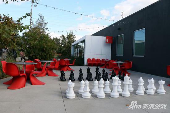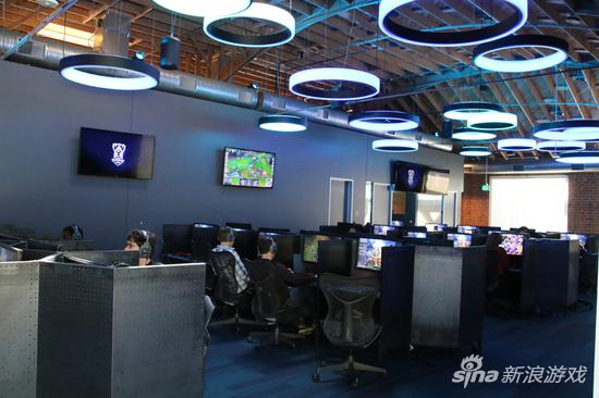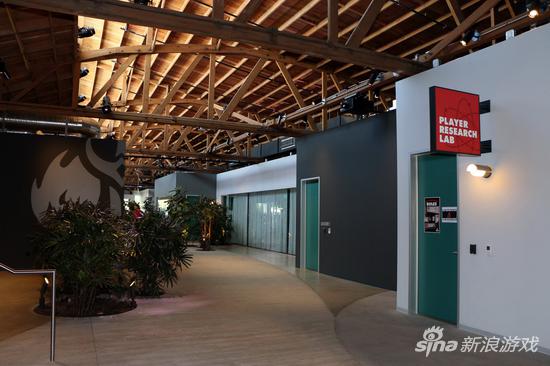 不仅园区内办公大楼以“QWERDF”命名,户外庭院也分为上中下三条路。公司内更是随处可见英雄联盟相关的手办等元素。