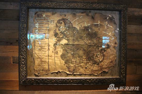墙上挂着破旧的海图,描绘着比尔吉沃特和暗影岛海域的宝藏,似乎由于浸水而变得皱巴巴的。让人忍不住想揭下来收藏。