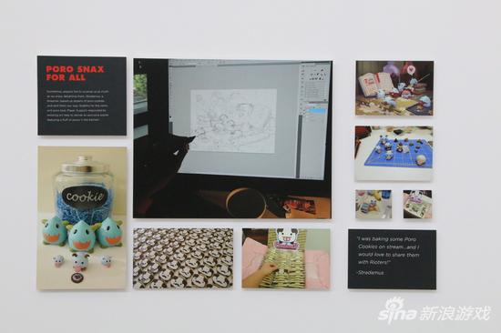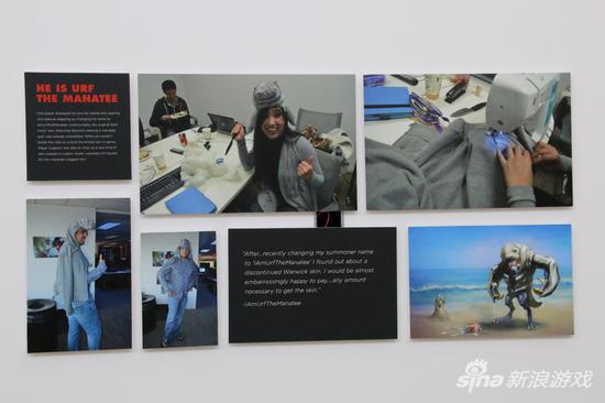 前厅里的故事墙格外引人注目,这里记录着拳头客服对玩家的“特殊服务”。比如,这幅图讲的是,一位英雄联盟的铁粉,用游戏中皮城女警的名字,为刚出生的小女儿取名为凯特琳!客服们为了表达祝贺,亲手制作了皮城女警的一整套皮肤挂饰,挂在小凯特琳的床头。