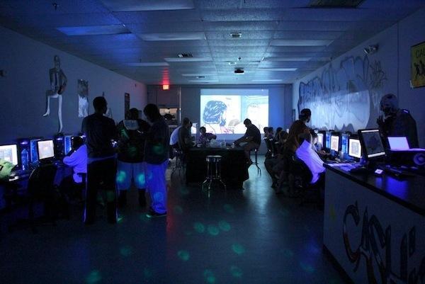 实拍美帝网吧不过和中国不同,大多数美国人玩游戏并非是去网吧,而是在自己的家中。毕竟美国国内主机玩家比较多,另外也有很多玩掌机的休闲玩家。不过网吧在美国仍然有,上座率也不低,如果你好奇美帝的网吧是什么样的,下面就来看看吧。