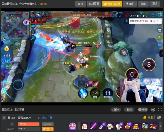 李太白凭借自己幽默搞笑的直播风格荣获了“虎牙王者荣耀最佳主播”,能够在几个月的时间内成长成为一名优秀的游戏主播,不仅是因为他出神入化的走位和超强的意识,更多的是他愿意与“百粉”互动,把粉丝当做兄弟和家人一样对待,在百粉的心里太白也是一位良心主播,经常会为“百粉”举办活动,发放奖品,不仅如此,争夺国服最强李白也要带上粉丝一起上分。