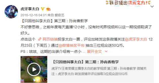 众所周知,王者荣耀S6赛季开启了荣耀战区排名系统,各位大神更是摩拳擦掌虎视眈眈,当然李太白面对国服最强李白称号的诱惑也是着实没有抵抗力。但太白表示:独乐乐不如众乐乐,他希望登顶国服最强的路上有“百粉”的陪伴,可以和粉丝一起分享登顶的快乐。