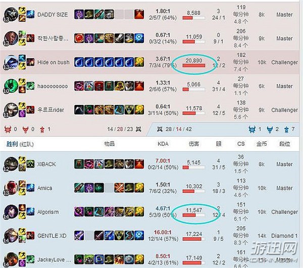 从这局游戏的数据上来看,Faker虽然作为败方,但是伤害却远比对位中单高,可以看出Faker已经尽力了,难怪最终会心态爆炸换了6个女神泪。