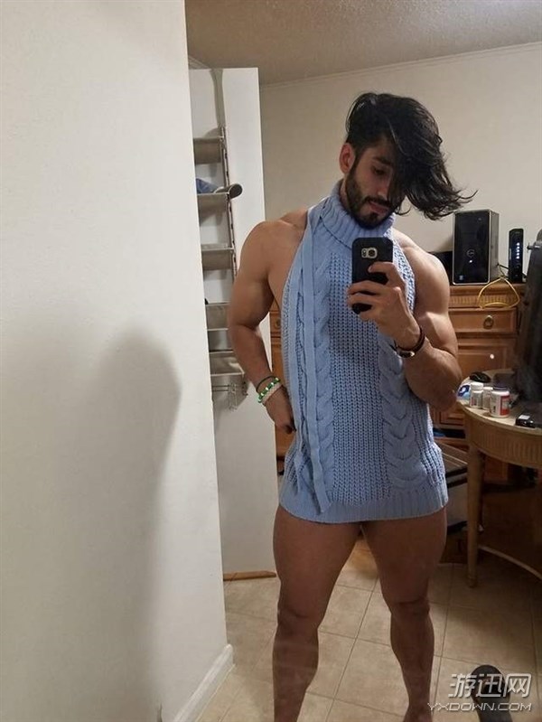 那么如果男的穿上这种露背毛衣,是否也会变得性感呢?国外一名帅哥用照片给出了答案。