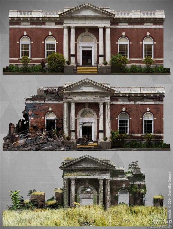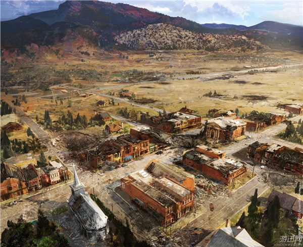 Karakter在设计时参照了一些美国小镇和地标的风格,并依靠着自己的想象将其1000年后的形象绘制了出来,图片中也有不少随着时间推移,这些建筑逐渐破败的样子。