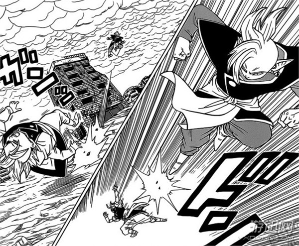 为了拖延时间等悟空叔叔和父亲贝吉塔回来,特兰克斯联手东界王神与黑悟空和扎马斯展开激战,然而实力较弱的两人却被对方死死压制住。