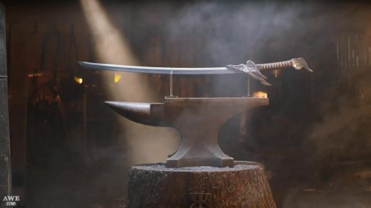 武器人间在打造这柄武士刀时,将刀分为三部分制作:刀刃、刀镡(剑格护手)、刀头,三部分制作完毕后进行组装,再缠上柄卷就大功造成。