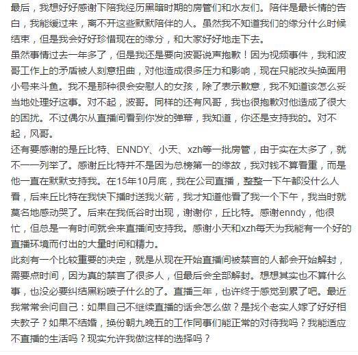不过郭mini在微博最后的一段话还是引发了不小的争论,她说:“如果自己不继续直播的话会怎么做?是找个老实人嫁了好好相夫教子?如果不结婚,换份朝九晚五的工作,同事们能正常的对待我吗?我能适应不直播的生活吗?现实允许我做这样的选择吗?”