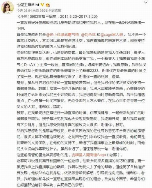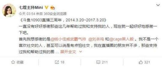 主播郭mini想必很多网友都听说过,曾深陷“脱衣门”丑闻的她已走出阴影。现在郭mini迎来了自己的直播三周年,她也发微博感谢了那些这几年帮助过她和支持她的人。