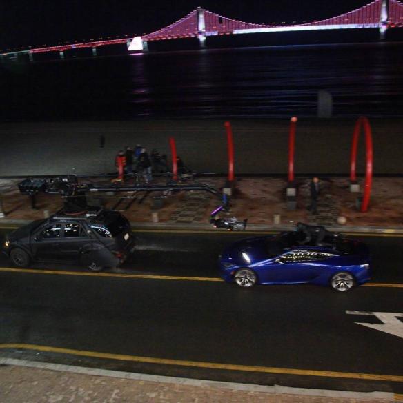 从本月17号开始,漫威电影《黑豹》在韩国釜山市札嘎其市场、广安里海边等多地取景拍摄,整个日程将持续13天,29日结束。今日曝光的片场照中的飙车戏,是以釜山地标广安里大桥为背景,在广安里海边公路上拍摄的。