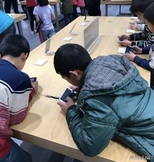这些学生还背着书包,不知道是下课了还是旷工在玩游戏?旁边站着的工作人员也是很无奈,把人家赶出门对门店的影响也不好。就这样,小学生在手机店霸机玩游戏,成了一道独特的风景线,让不少顾客侧目。