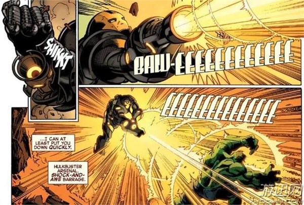 两位也是老对手了。在《原罪:钢铁侠vs浩克》里,通过观察者乌阿图的眼睛了解到,布鲁斯班纳之所以变成浩克完全是因为钢铁侠的错。班纳博士利用改良过的绝境病毒变身浩克的同时还保留着自己的智商,战斗中将反浩克战甲打的粉碎。