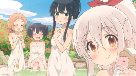 作为庆祝,妮娜老师带着千矢等人来到了有着“超强占卜功效”的温泉。将身体全部浸泡进温水之后,少女们瞬间解除了持续至今的紧张心情,变回了之前悠闲的样子。尤其在佐久队长等人加入之后,场面变得越来越热闹。