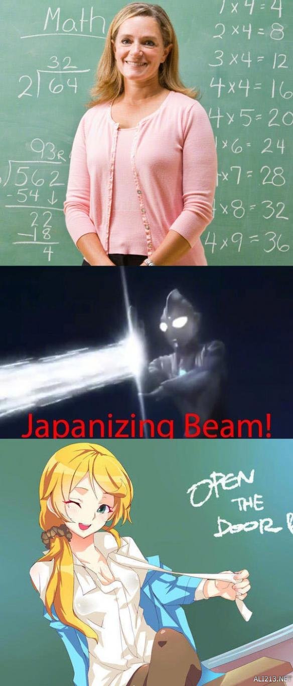 日本动漫中有一个显著的特点就是很多角色形象都是拟人化的,而且这些基本上都是一个套路,那就是不管你的原型是什么,最终一定会变成美少女这样的形象,当然现在也开始会有帅哥的形象出现,不过还是以美少女居多。近日就有欧美的网友作图来吐槽这一现象,给现实中的人物或者是物品加上“日本特效光线”,都会变成一个个美型的妹子(帅哥)角色或者是可爱的形象。
