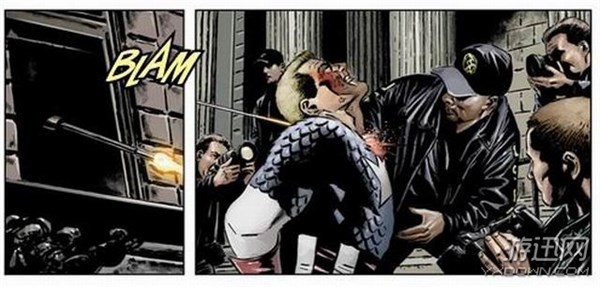 为了打破“英雄不死,邪恶不息”这一定律,吸引更多读者。在美国队长#111中,他被九头蛇组织射杀“致死”。队长和尼克福瑞相约在游乐园这样人庭广众,等待他们的却是九头蛇的圈套。