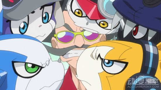 而从官方公布的新主题曲画面来看,主人公新海春的好友大空勇仁正式出镜,与现有的四位主角小春、绘里、虎次郎、零同台而立,让人期待他在后续故事里的表现。相比于OP画面里严肃紧张的气氛,ED画面则显得轻松了许多,在这里各位应用兽齐齐化作学生坐在教室里,充满了诙谐的校园风格。ED最后的画面中,小春的祖父,同时也是数码驱动发明者的新海博士被五只主角应用兽包围,莫非他还讲曝出更多黑幕……?