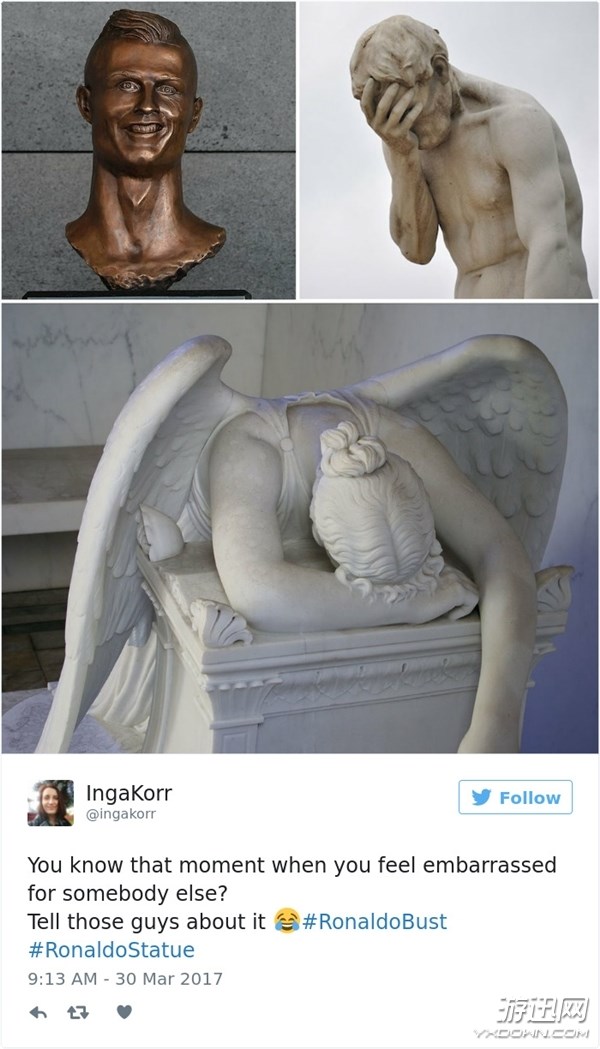 除了吐槽之外,网友也把C罗的雕塑玩坏了,各种奇葩作品接踵而至。