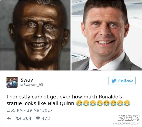 不知道大家有没有买到过“邪神手办”,小编可以体会这种糟糕的心情,比如下面这个著名的Saber。著名球星C罗也体会到了这种心情,近日他在葡萄牙马德拉的“C罗机场”为自己的新雕像揭幕,而当这座雕像露出庐山真面目时,真的是让人哭笑不得。