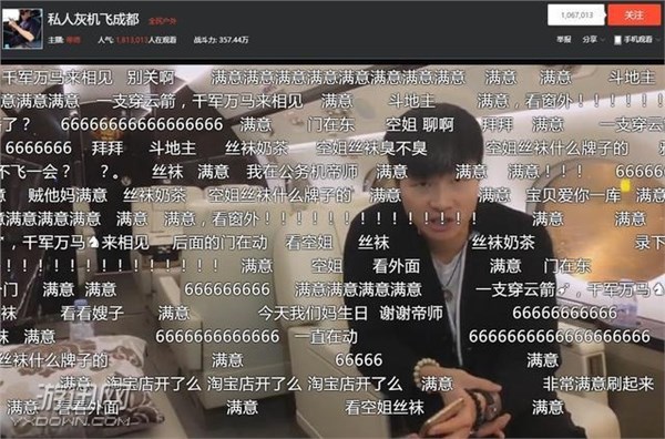 他花了20多万包了一架价值4亿的私人飞机,就为了让观众们体会一下富人的生活方式,这一场直播一度有200多万的观众同时观看。