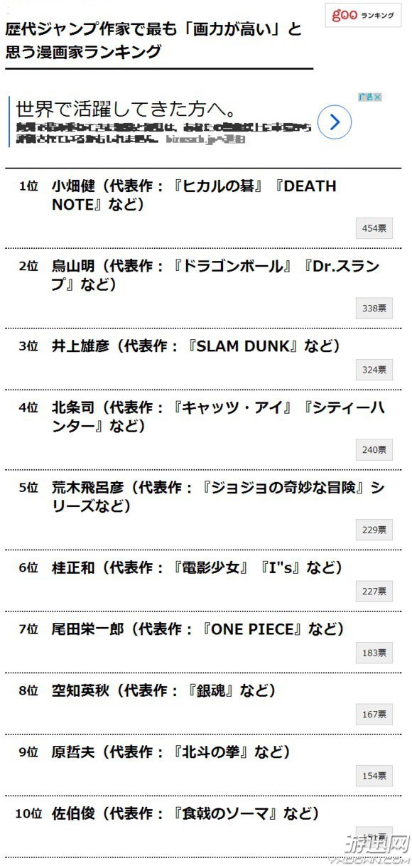 近日,日本的网站gOO也是开启了一个《JUMP》系漫画家“画力”的评选,大家也是纷纷投票选出自己心目中画功超好的漫画家,目前结果已经公开。登上这个榜单的漫画家都是相当的有实力,但是有些漫画家的排名却是引起了动漫迷的热议,一起来看看这个结果吧。