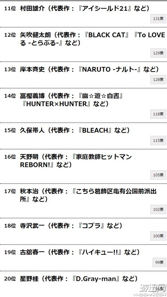 第14位:富坚义博 代表作《幽游白书》《全职猎人》