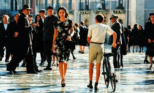 在影片中你能看到人性的丑恶,更能看到了人性的光辉:一个启蒙时期的13岁少年雷纳多,爱上了成熟美艳的少妇玛莲娜。那些为了能见到她,为了能碰到她而骑着自行车狂奔的时刻,像是在追逐自己的幸福。那些因为看到别人诋毁自己喜欢的女人而去报复的小动作,那个在教堂里虔诚的跪在圣像面前,喃喃自语的说“在我未有能力照顾好她之前,请神一定要好好保护她”给了我们感动。