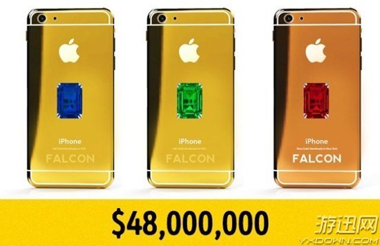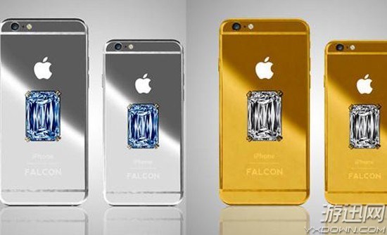 这款 iPhone 6 是尊贵版,表面是纯金的材质,背面还镶有一颗钻石。