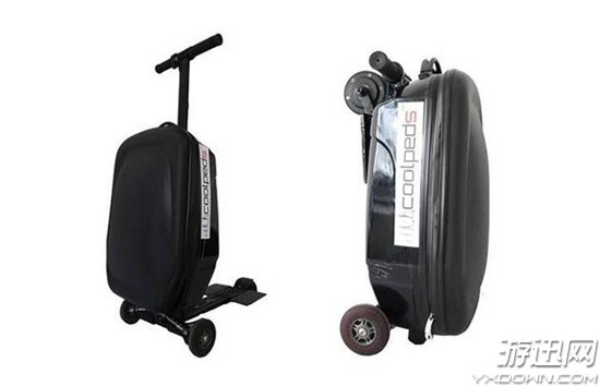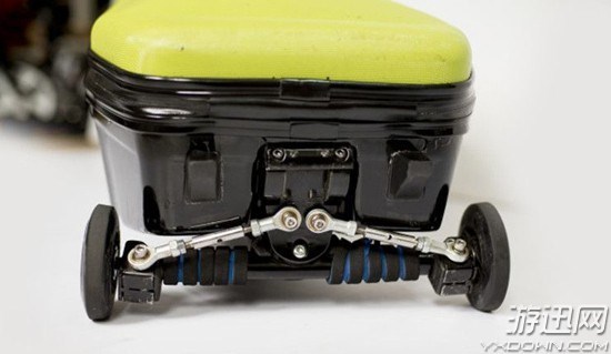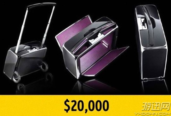 采用乌木、镁、铝、马鬃及各种皮革制成的电动行李箱